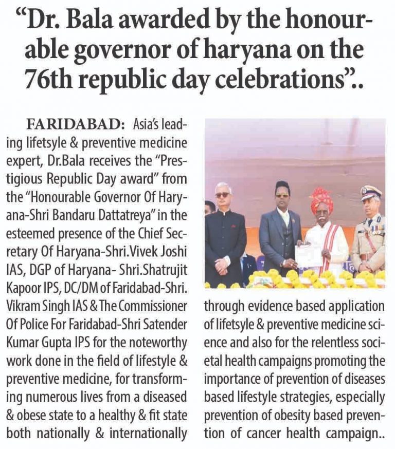 India’s leading lifestyle & preventive medicine expert, DR.BALA was felicitated by