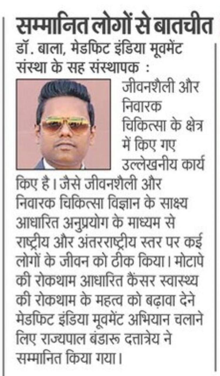 At this momentous occasion,the member of parliament expressed his unconditional support for our “PREVENTION OF OBESITY BASED PREVENTION OF CANCER CAMPAIGN” and also conveyed his best wishes for all our health missions and has arranged a meeting with the honourable health minister of our country,Shri.J.P.NADDA ji, to present our “The significance of prevention of diseases policy for the future well-being of India” based on “promotion of lifetsyle management” backed by “regular exercises & right eating” at pan India level by our government which can play a key role in reducing the obesity, diabetes, hypertension & heart diseases numbers in India and this will automatically reduce the health care budget and make India omnipotent & a nation filled with strong & healthy Human Resources and disease free citizens..